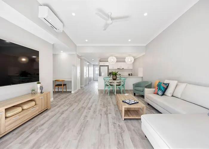 The 2-room 'Esplanade Escape' A Fresh Coastal Family Hideaway Apartment Hervey Bay, located in the Urangan district of Hervey Bay, around 7 km from the WetSide Water Park, features views of the inner courtyard. Staying in this 300 m² apartment, nestled not far from Dayman Park, guests can relax on a patio.